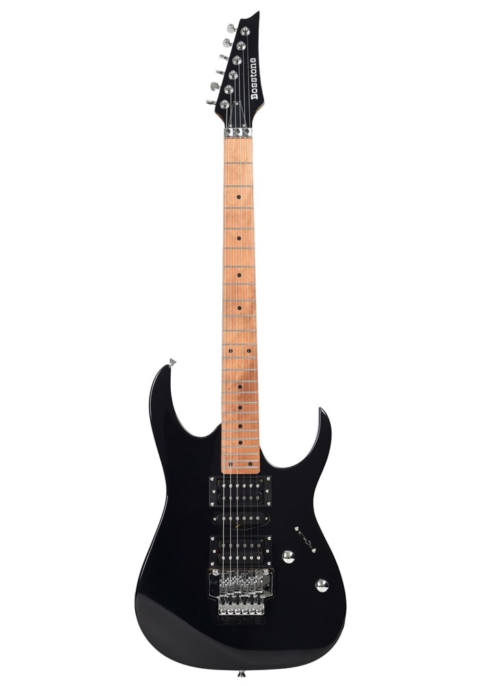 Электрогитара Bosstone серии SG-06 V.2 (2025) оснащена 6 струнами и выполнена из липы, что обеспечивает яркий и насыщенный тон. Гриф из печеного клена с накладкой из техновуда имеет 24 лада и "С"-образный профиль, что делает игру комфортной и быстрой. Мензура в 25,5 дюймов и радиус накладки 14" (355 мм) позволяют достигать отличной интонации и легкости в игре. Гитара оборудована двумя хамбакерами и синглом, а также пятипозиционным переключателем, что дает возможность создавать разнообразные звуковые оттенки. Регулируемый двойной анкер и бридж Floyd Rose обеспечивают стабильность настройки и возможность выполнения сложных техник игры. Хромированная фурнитура добавляет стильный акцент в общий дизайн инструмента.