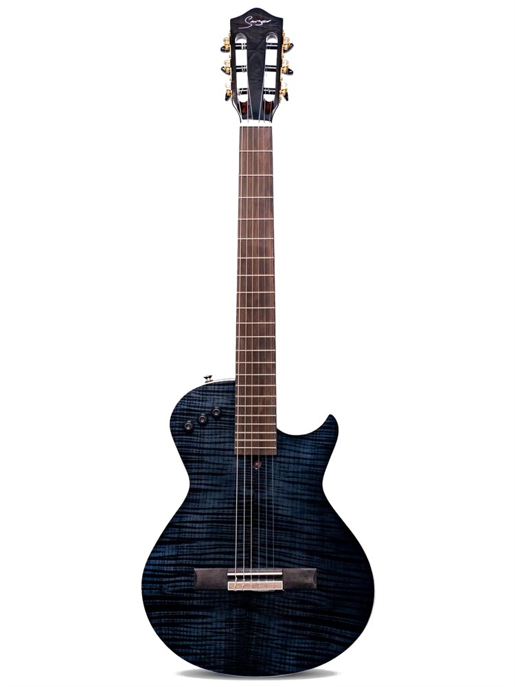 Сайлент гитара с нейлоновыми струнами и классической головкой грифа.