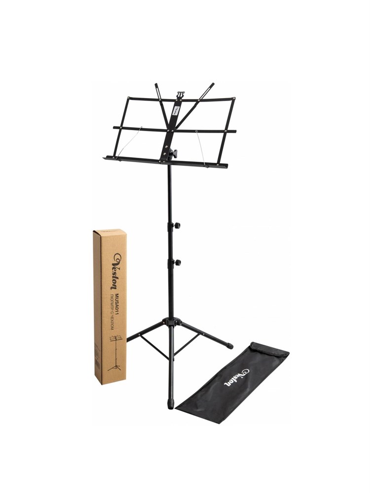 Легкий и устойчивый пюпитр VESTON MUSA011 - сделан из прочного металла. Отлично держит нотную партитуру и имеет удобный механизм. В комплекте есть чехол для пюпитра в сложенном виде ,который всегда можно взять с собой.